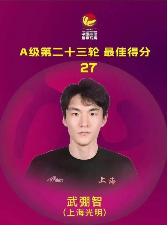 2024 - 2025赛季中国排球超等联赛男人排球A级赛事第二十三轮的最好单项本领:最高得分:武弸智(上海光明)27最好扣球:武弸智(上海光明)25(此句真是难以找到更多不同表述来篡改语句限定和抒发方式,兴致已很浮松明了,只可保抓基本原样,未用原文任何字词)