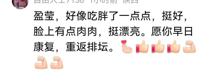 更多的球迷是奉上道喜:“盈莹,好像吃胖了极少点,挺好,脸上有点肉肉,挺漂亮。愿你早日康复,重返排坛”。